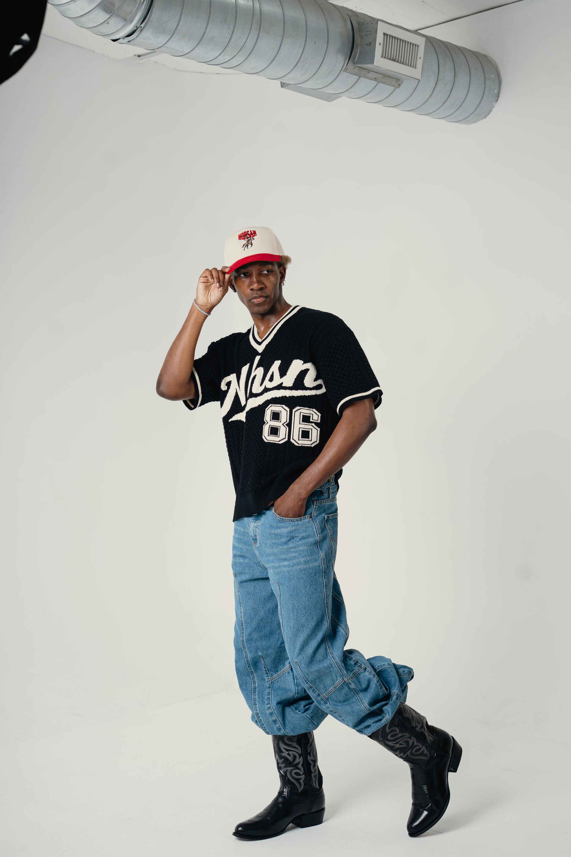 Vintage baseball inspired silhouette with a cotton cable-knit body