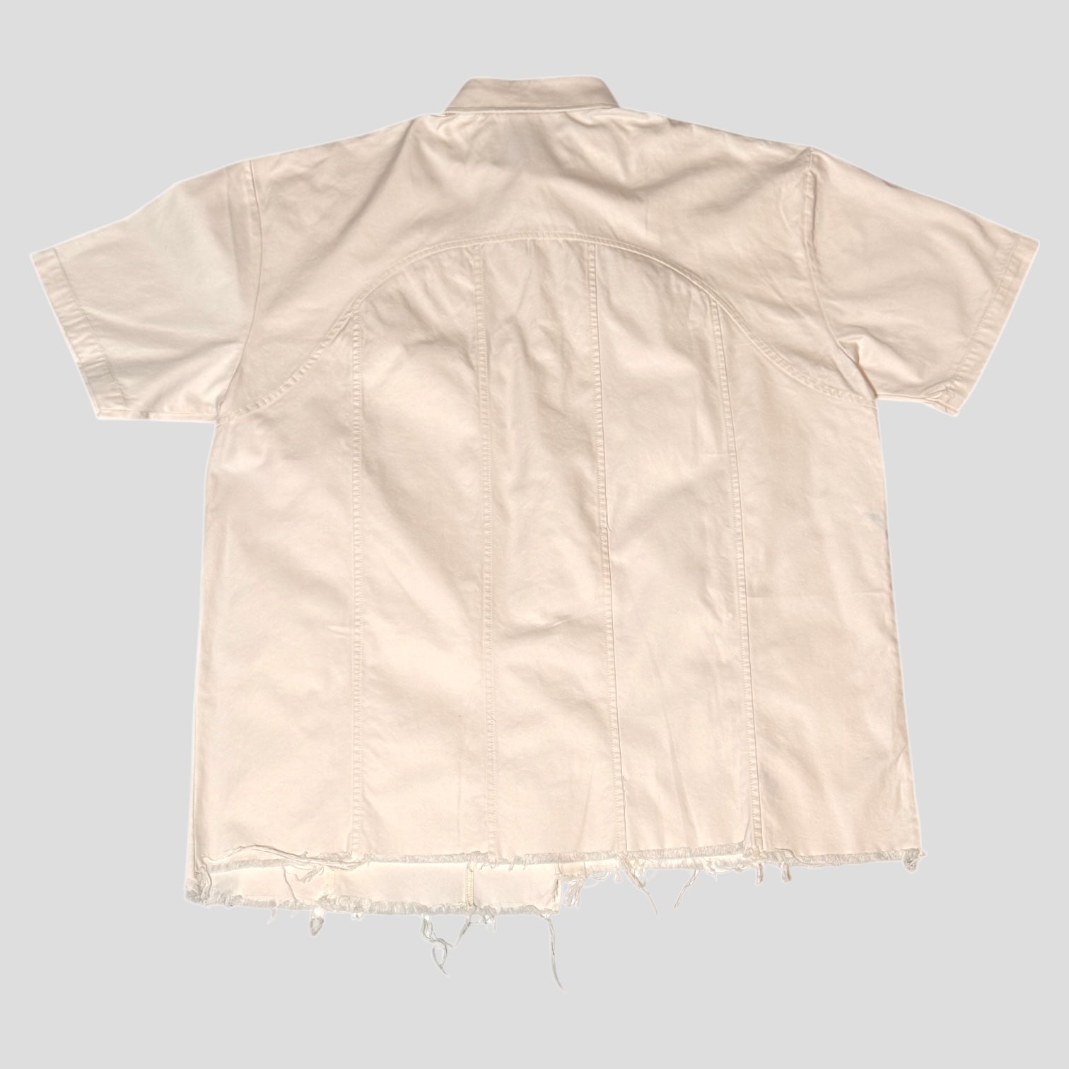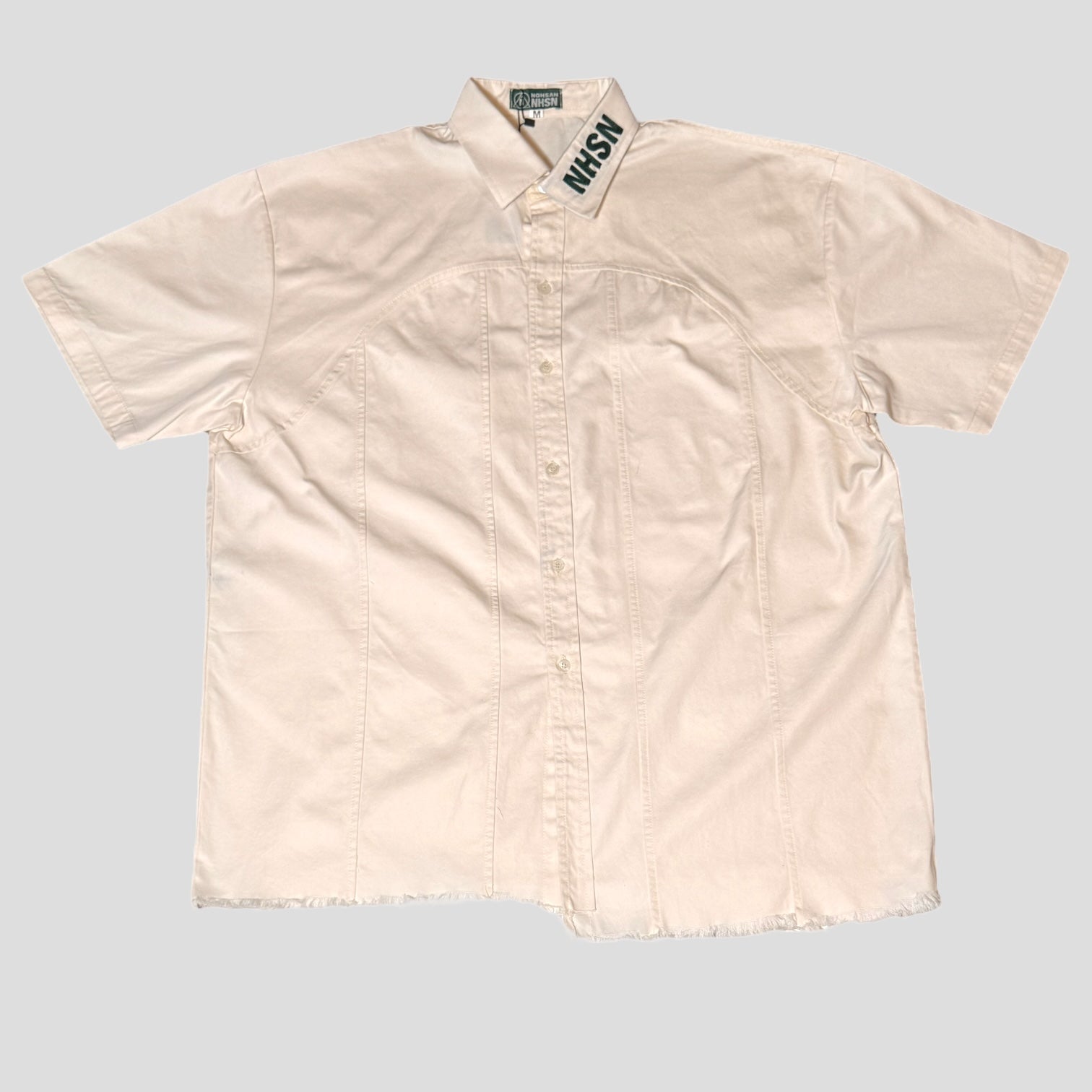 The Nolan Oxford redefines a classic with a raw edge. Cut from crisp oxford cotton, this short-sleeve shirt is elevated with a panels plus distressed, frayed hems that disrupts tradition in the best way. The chenille-embroidered NHSN branding at the collar adds a bold, textured detail — subtle yet powerful, a nod to craftsmanship and statement-making design. Designed for layering or standalone wear, the Nolan Oxford bridges refined tailoring with the disruptive energy of modern streetwear.